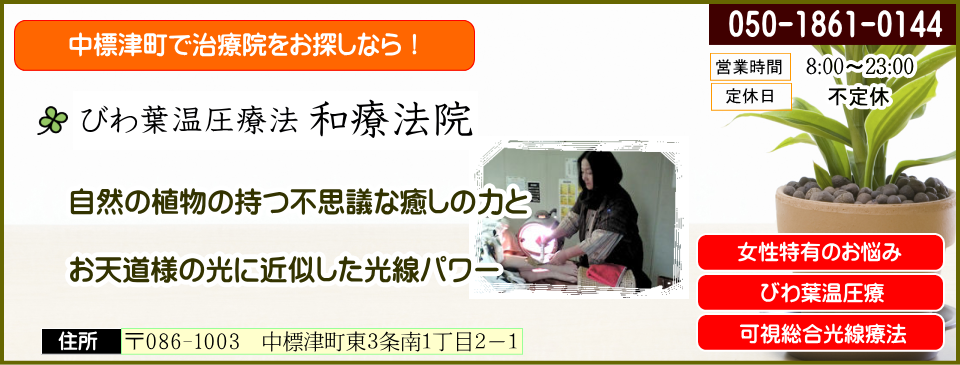 「びわ葉温圧療法 和療法院」では、びわ葉による自然療法と可視総合光線照射による同時施術を行っております!